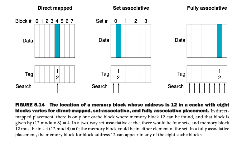 • Direct-Mapped Cache: 블록 12는 캐시 블록 4에만 저장 가능.