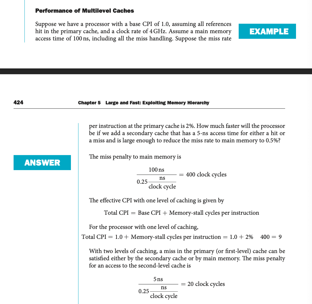 • L1 Miss Penalty = 5ns, Main Memory Access Time = 100ns.