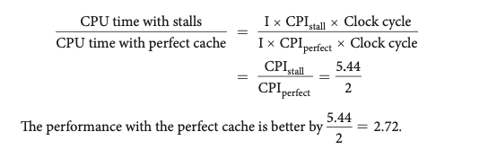 Memory-stall clock cycles = (Instructions/Program) * (Misses/Instructions) * Miss penalty