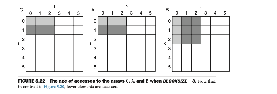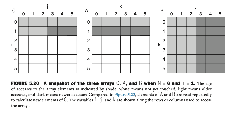 캐시에서 한 번에 N-by-N 크기의 행렬 A, B, C를 모두 저장할 수 없다면: