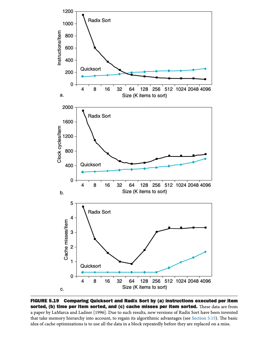 그림 5.19는 Quicksort와 Radix Sort를 비교한 결과를 보여준다: