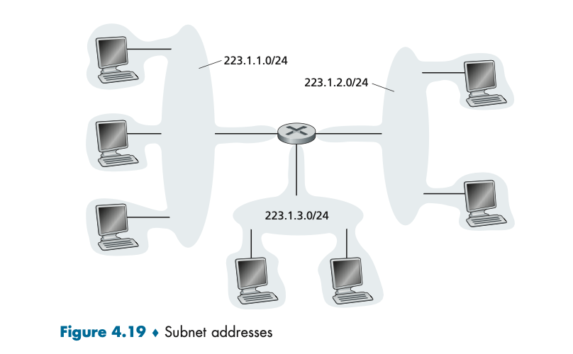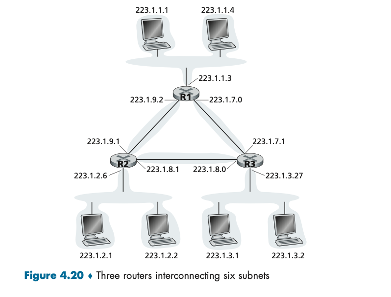 • 223.1.1.0/24: 호스트 223.1.1.1, 223.1.1.2, 223.1.1.3 및 라우터 인터페이스 223.1.1.4.