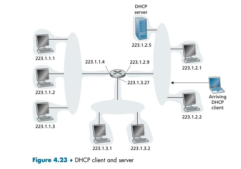 • 그림 4.23은 DHCP 서버가 여러 서브넷에 걸쳐 IP 주소를 할당하는 방식을 보여준다.