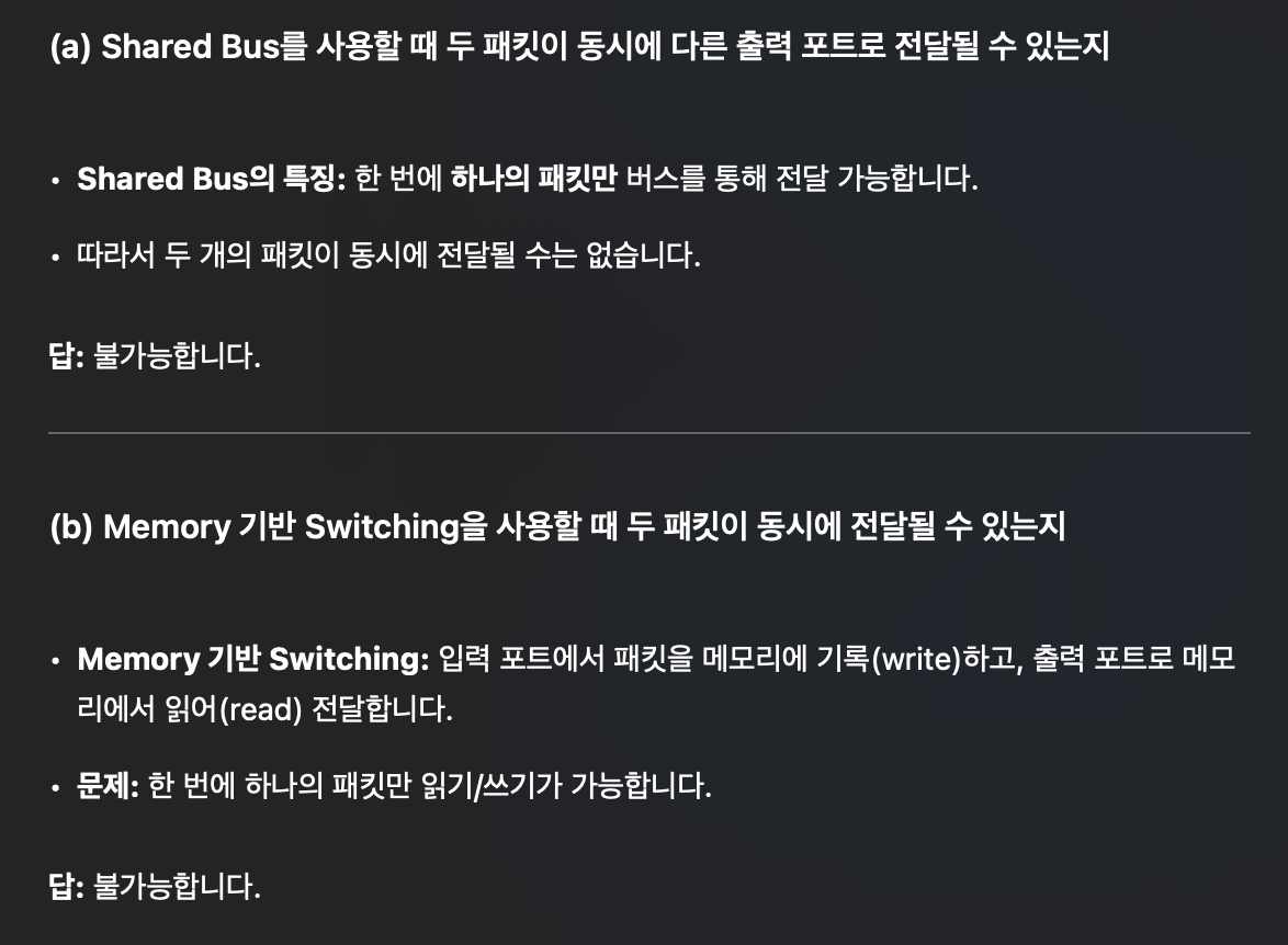 • 중앙 메모리를 사용해 입력 포트에서 출력 포트로 패킷을 이동.