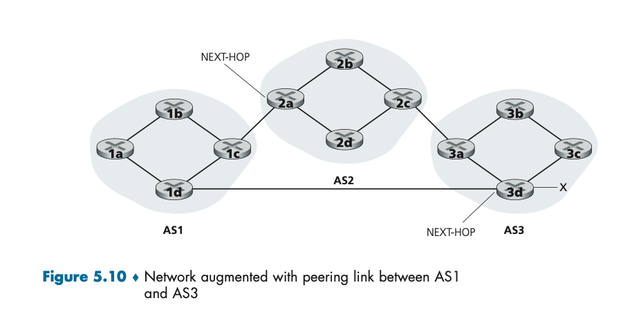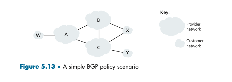• Inter-AS 라우팅은 각 AS의 정책을 반영해야 하므로, BGP처럼 정책 기반 라우팅이 필요하다.