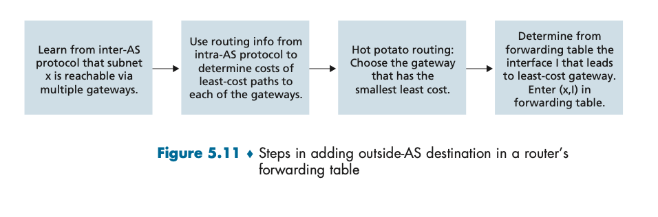 • 라우터는 AS 내부에서 비용이 가장 낮은 경로를 찾아, 패킷을 다음 AS로 넘긴다.