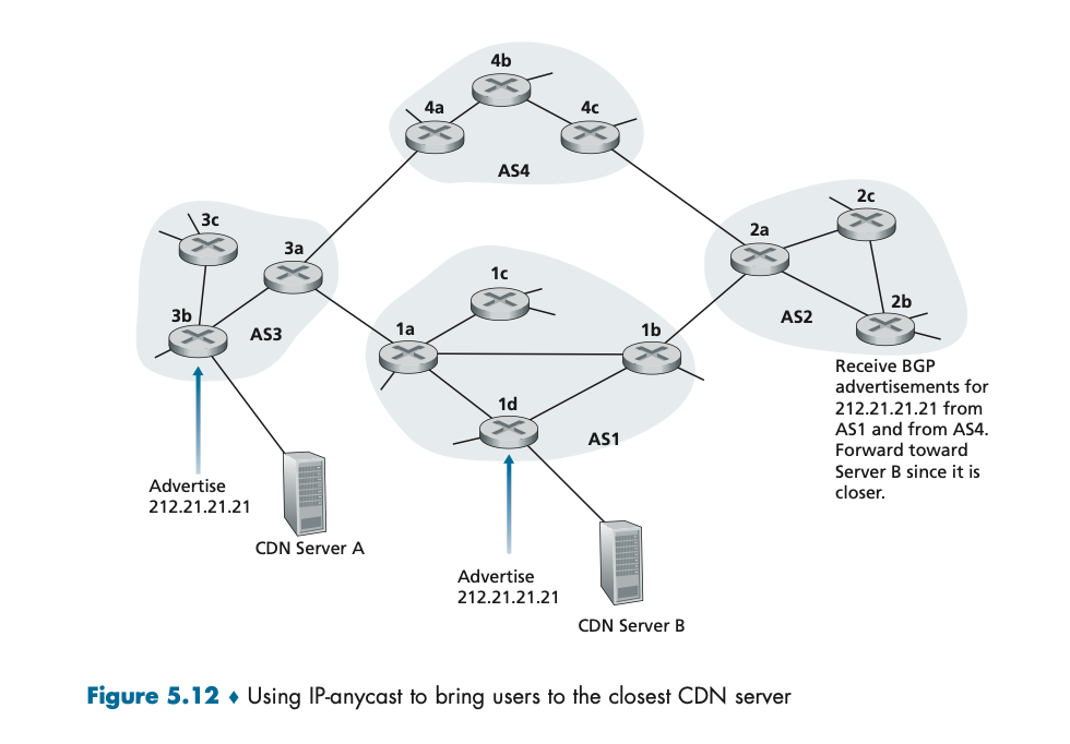 • CDN 서버 A와 서버 B가 동일한 IP 주소(예: 212.21.21.21)를 사용.