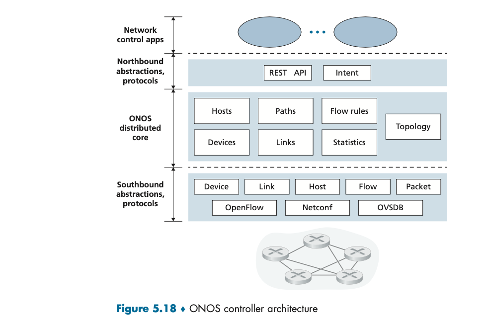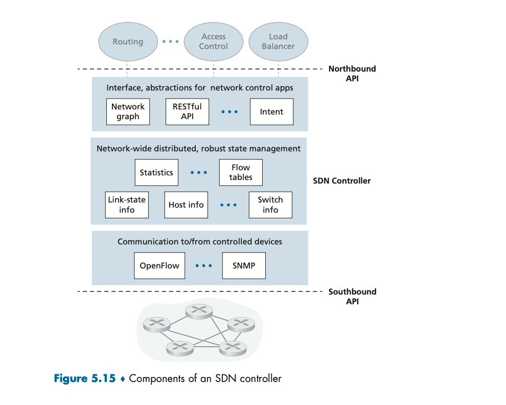 SDN 컨트롤러는 다음과 같은 세 가지 주요 계층으로 구성된다 (Figure 5.15 참조):
