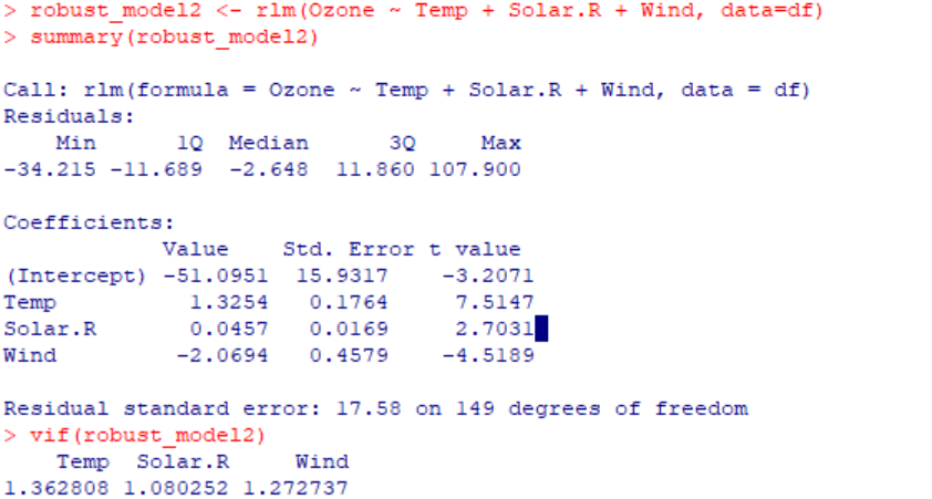 #데이터가 비정규성이므로 이를 분석하기 위해 rlm을 사용한다.