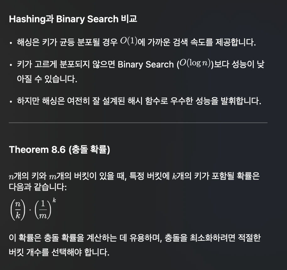 • Hashing은 키가 균등하게 분포된 경우 Binary Search보다 훨씬 빠릅니다.