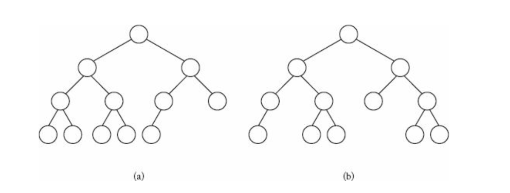 • 예를 들어, Figure 8.3(a)는 완전 이진 트리, Figure 8.3(b)는 거의 완전 이진 트리입니다.