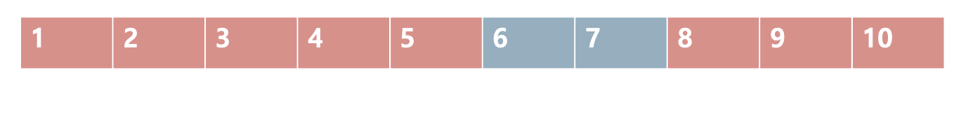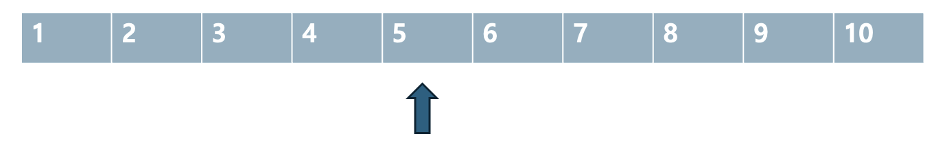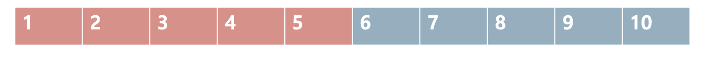 가장 첫번쨰 인덱스 (0번) 과 가장 마지막 인덱스(9번)의 평균 4 ((0+9)/2) 번 인덱스를 봅니다.