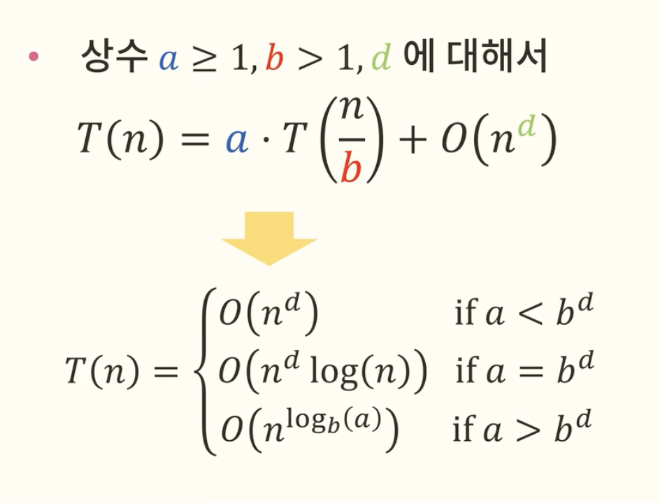 마스터 정리는 big-O 를 손쉽게 구할 수 있는 정리입니다.