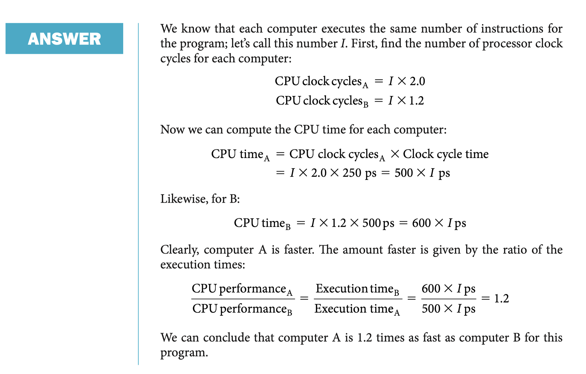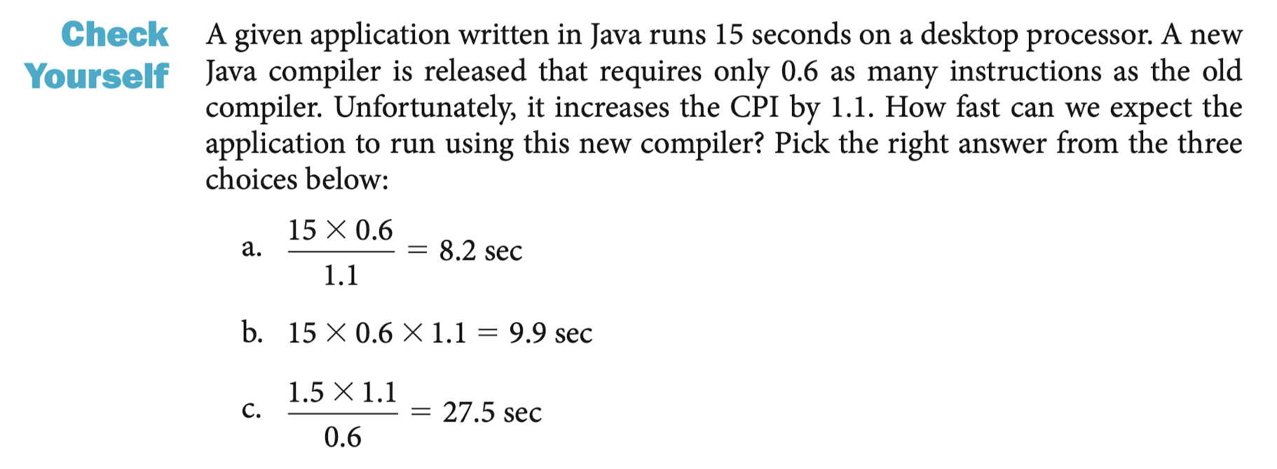 두 컴퓨터를 비교할 때, execution time을 구성하는 세 요소를 반드시 봐야 한다.