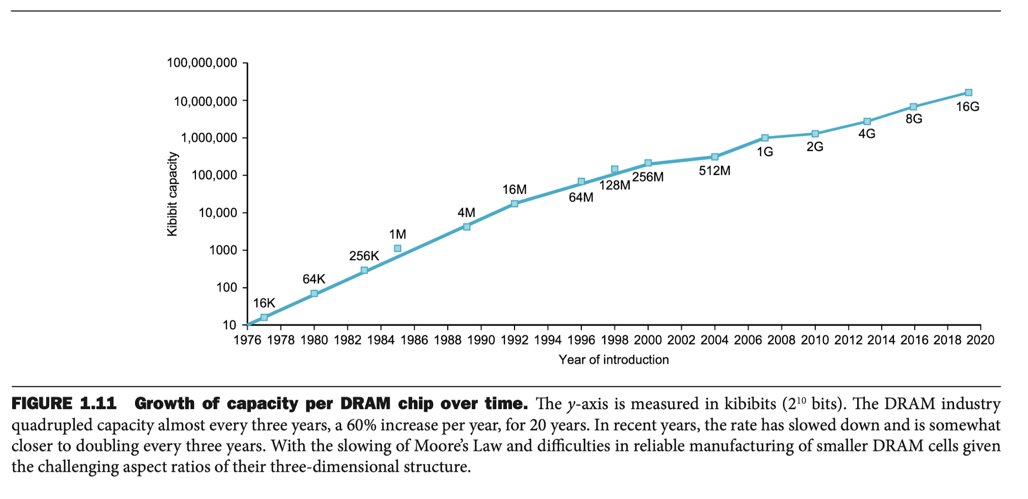 -무어가 doubling of resources의 지속성을 예측했을때, 칩에 들어가는 트랜지스터 수의 비율을 예상했고,