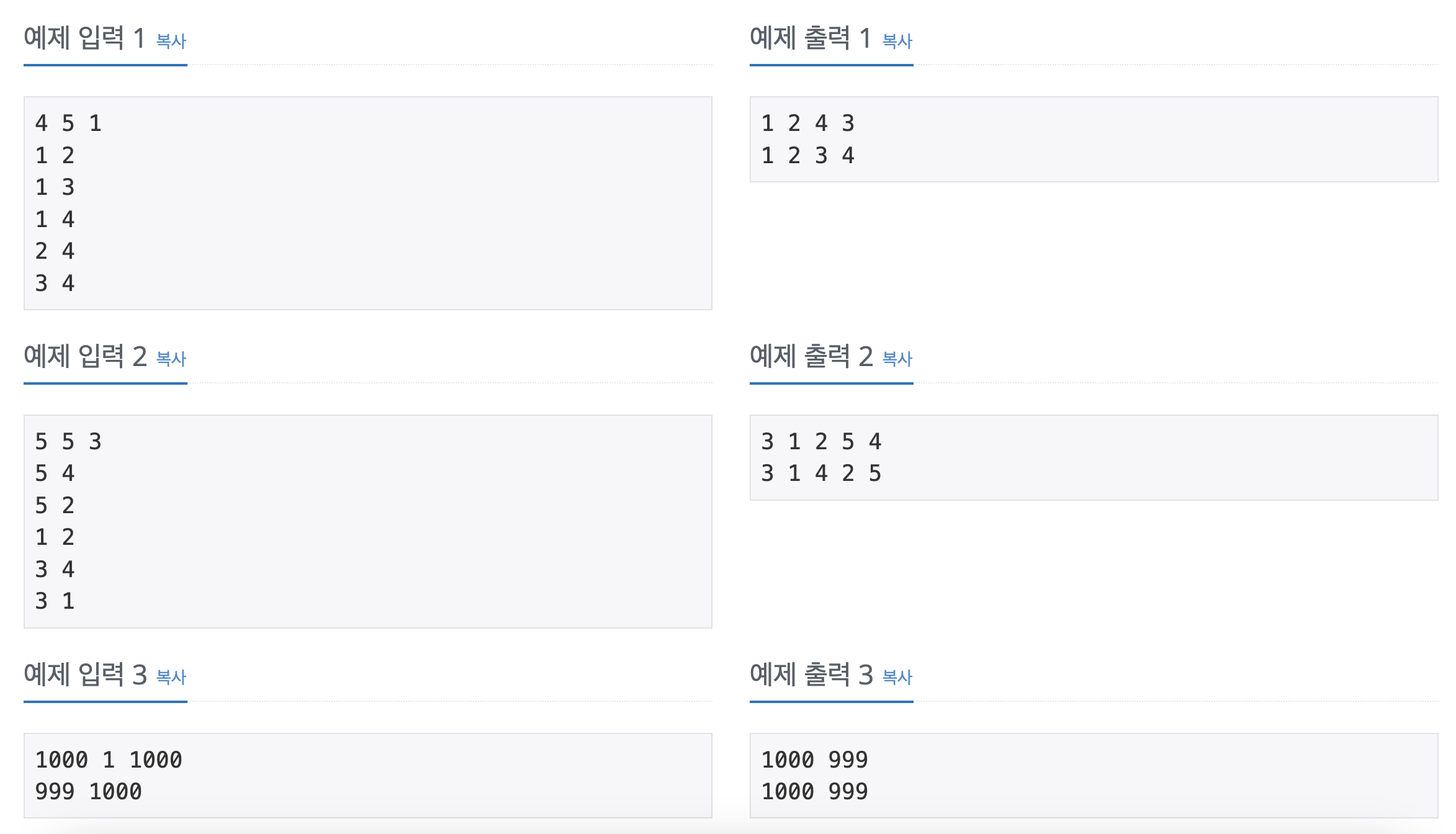 문제에 맞는 조건의 수를 입력받아 그래프를 만들고 탐색하도록 작동시킵니다.