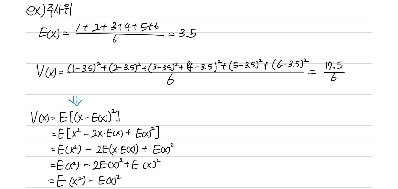 위와 같이 기댓값으로부터 분산을 구할 수 있습니다.