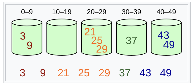 10의자릿수대로 분류해주고 각 바구니를 정렬해주는 방식이라 구현은 어렵지 않게 할 수 있을 것 같습니다.
