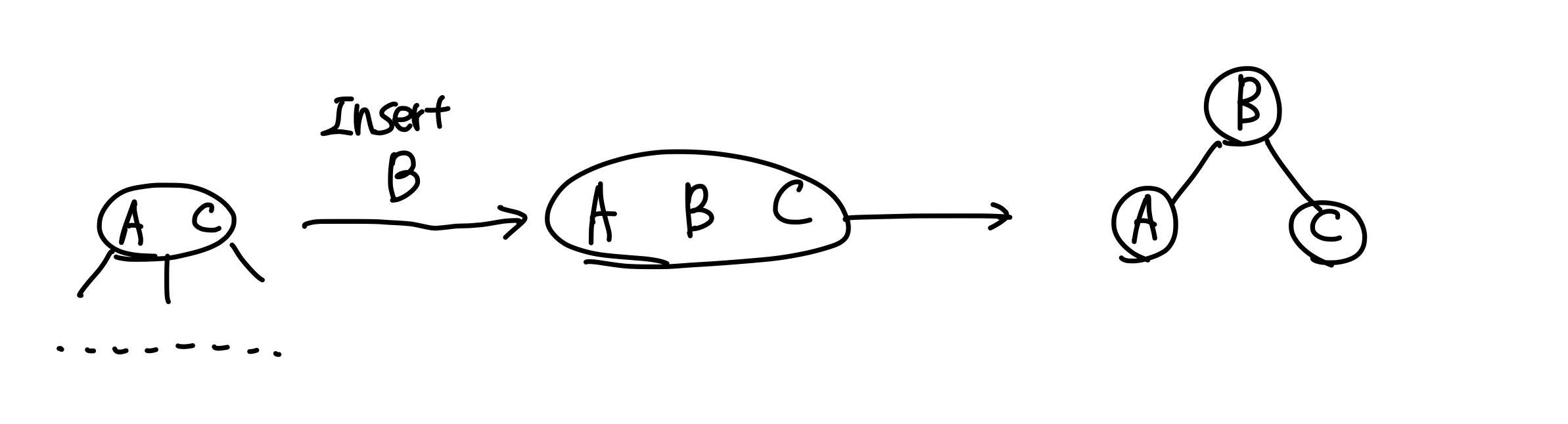 1. 데이터를 삽입할 때 키 값이 2개 있는 노드가 일시적으로 3개가 되는것처럼 보이지만
