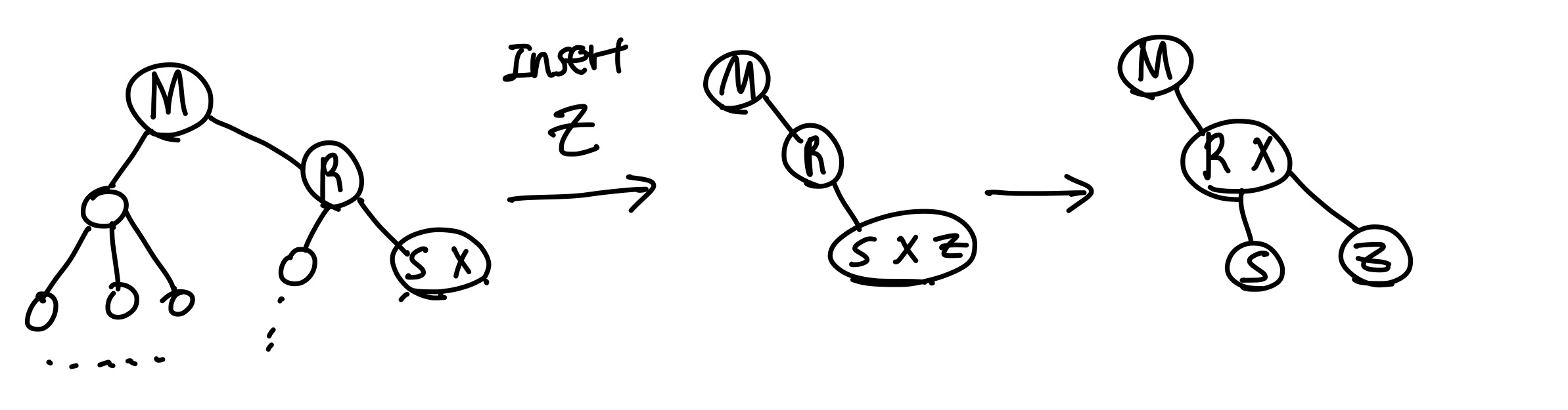 아래 그림과 같이 2-3트리의 경우 트리의 높이를 높이지 않고 해결할 수 있습니다.