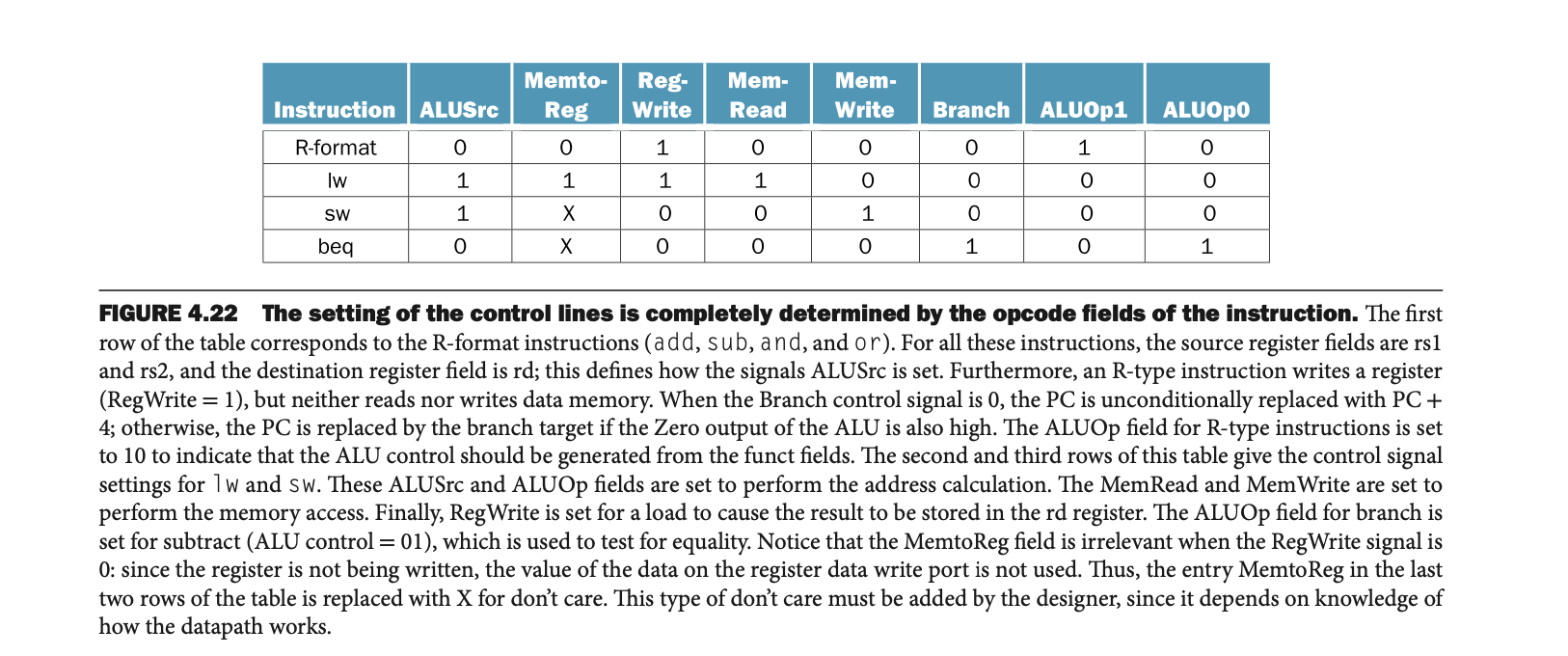 • MemRead, MemWrite: 메모리에서 값을 읽을지 또는 메모리에 값을 쓸지 결정한다. (lw, sw 명령어).