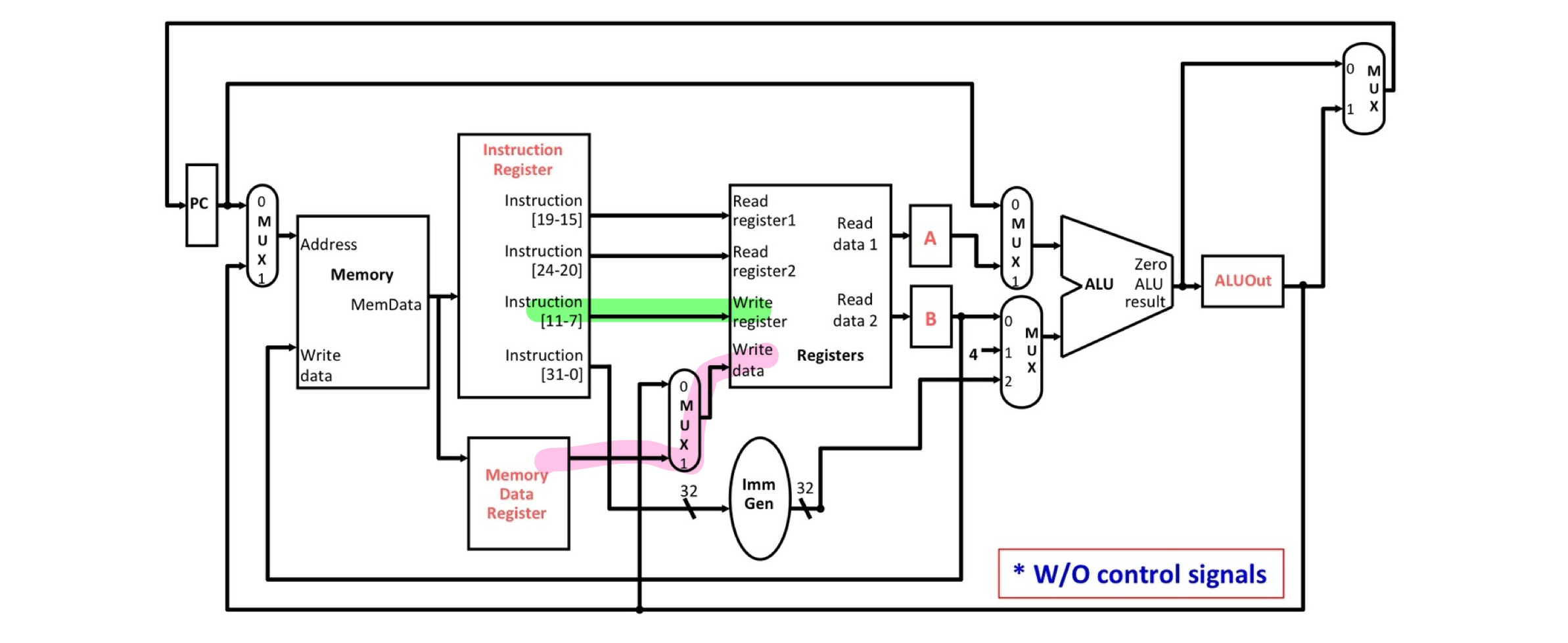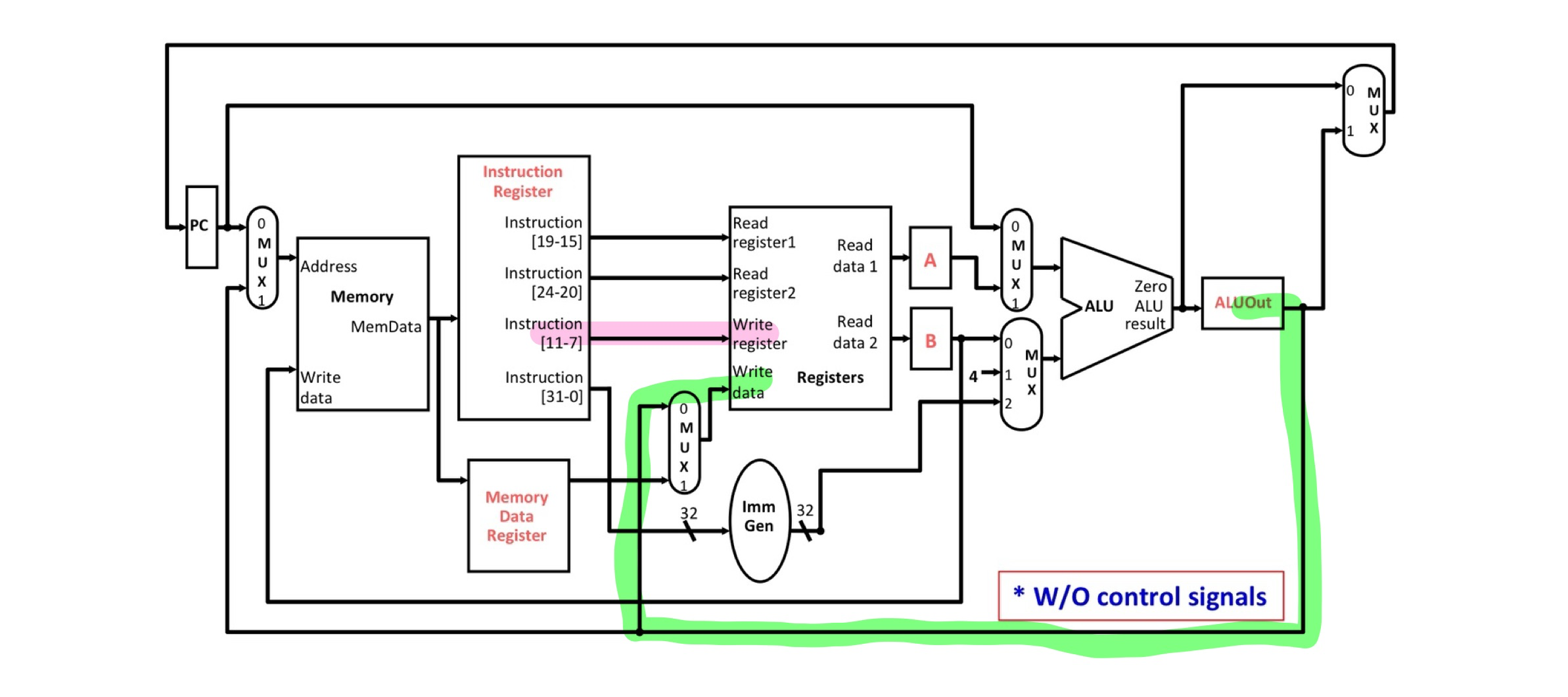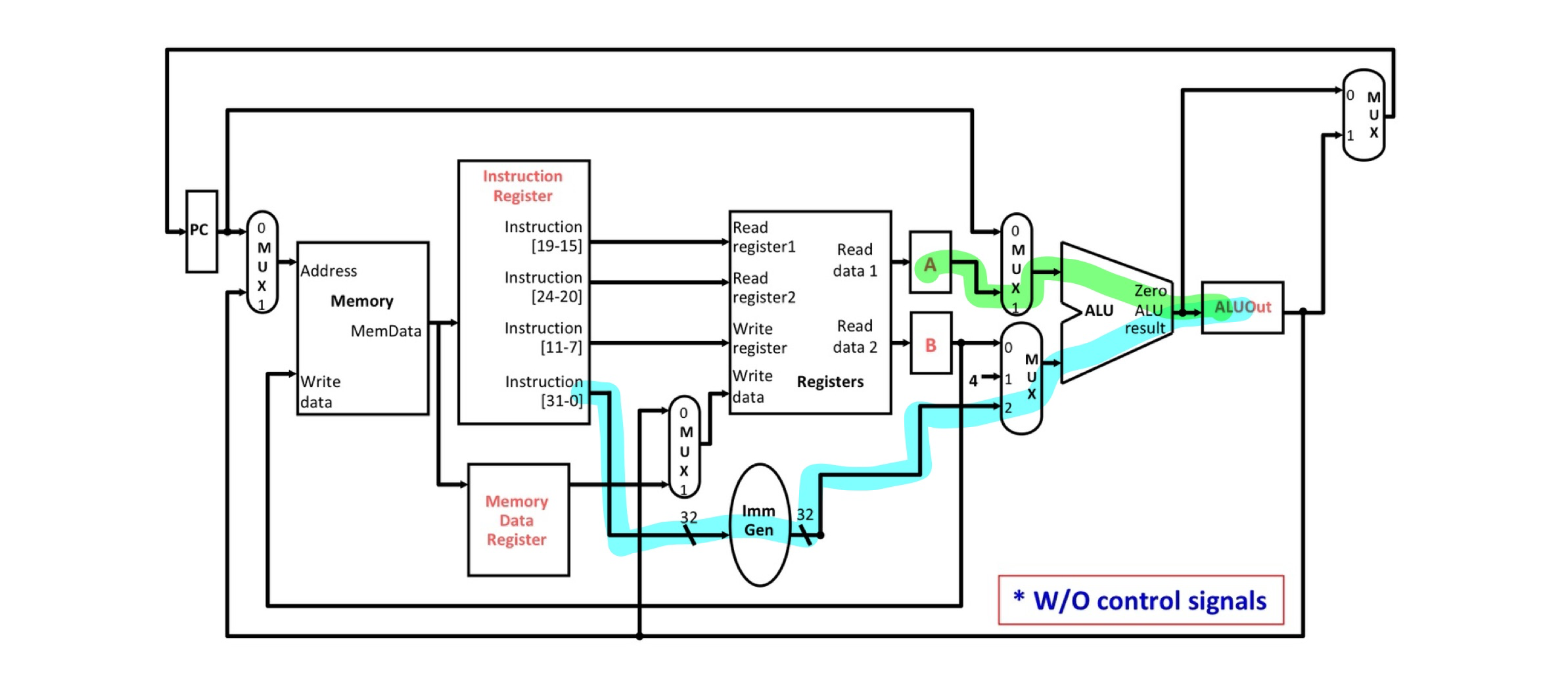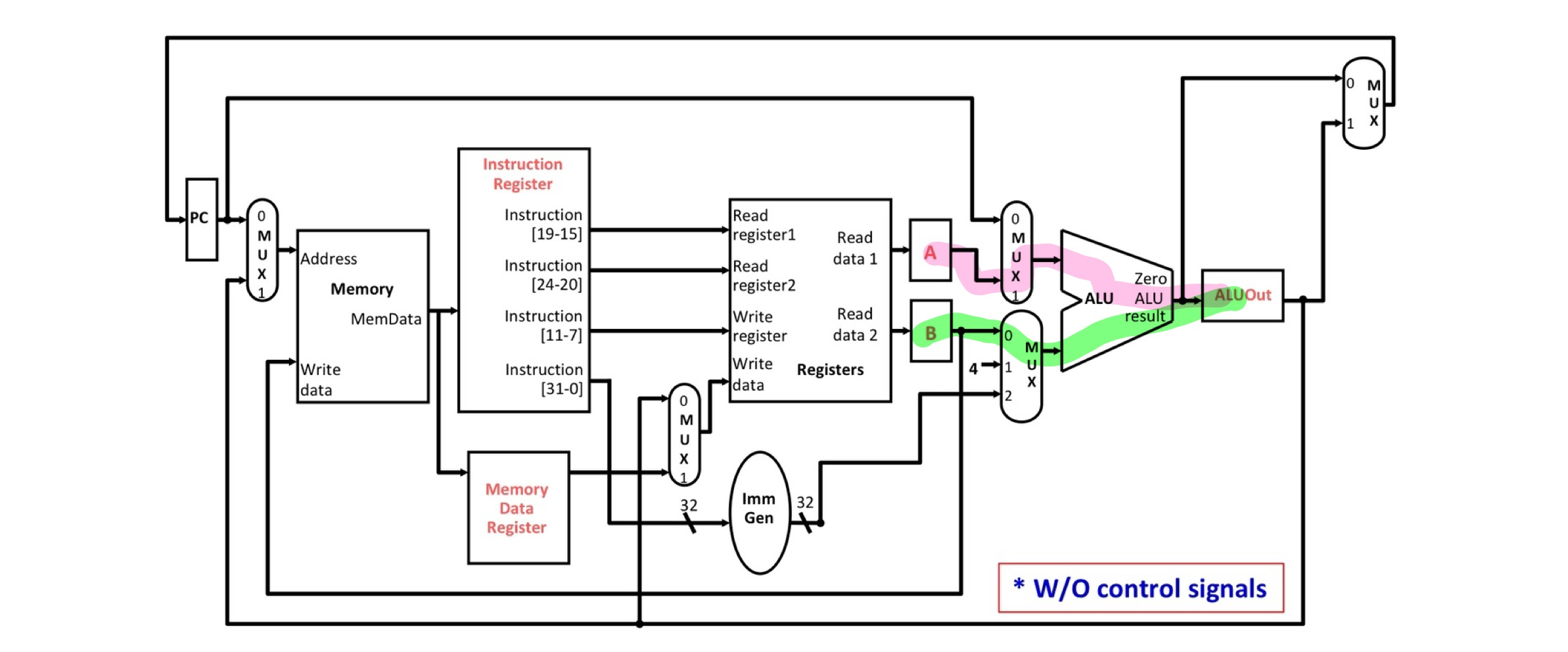 - ALU에서 두 번째 값을 선택할 수 있는 MUX가 필요하다.