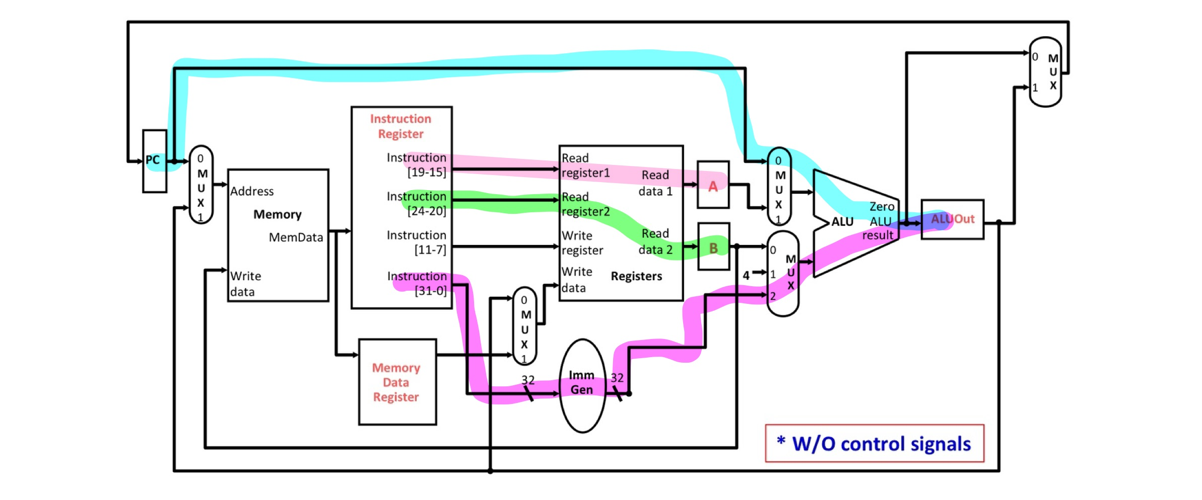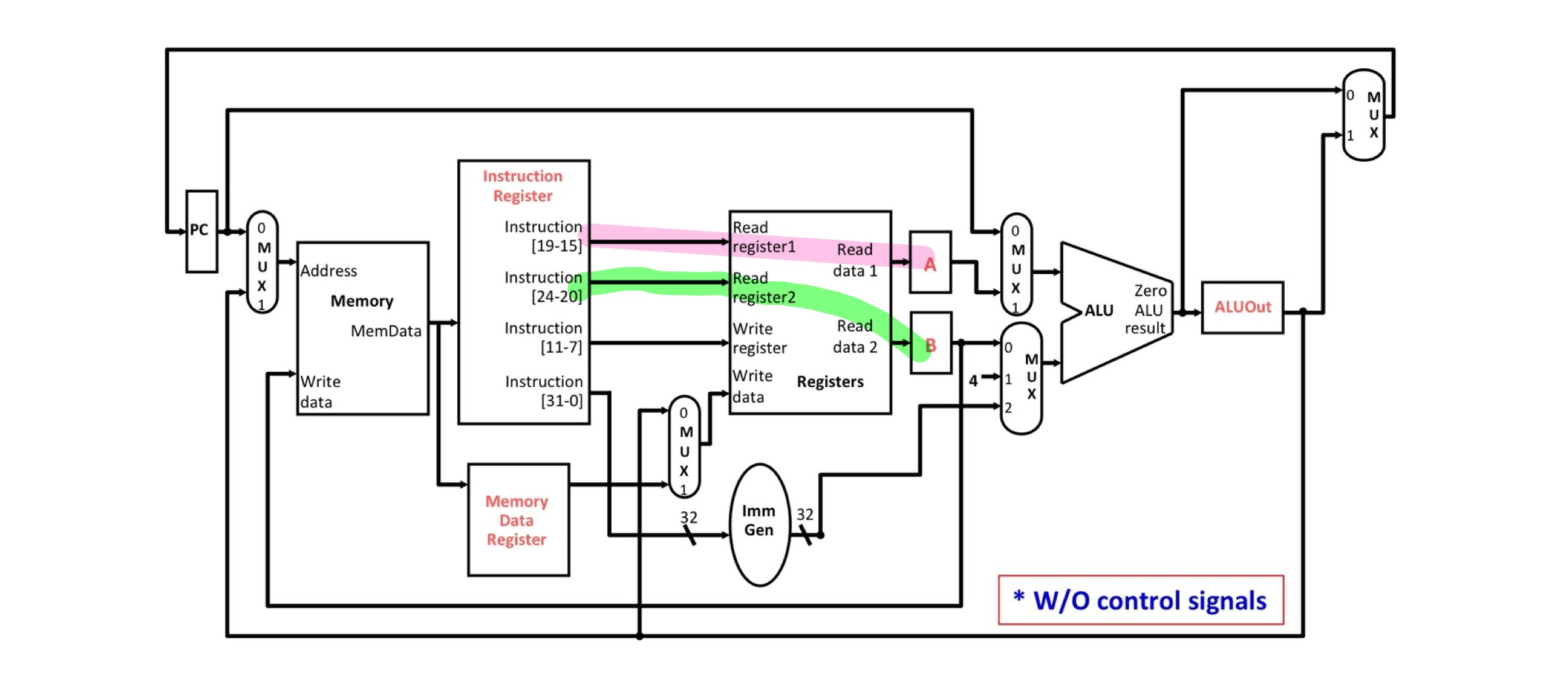 단일 ALU, register file을 이요하여 datapath를 만드려면 다음과같은 것들이 필요하다.