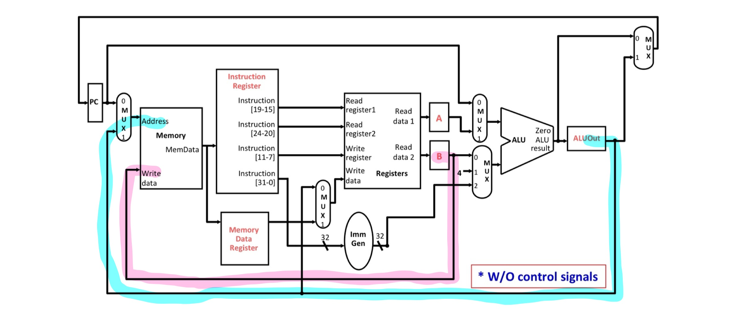 - 위 그림에 MUX(multiplexer) 와 control line을 추가한 그림이다.