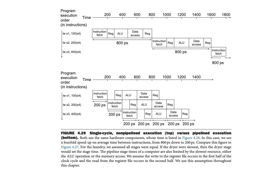예를 들어, 200ps의 시간이 걸리는 ALU 연산이 파이프라인에서는 더 빠르게 처리된다.
