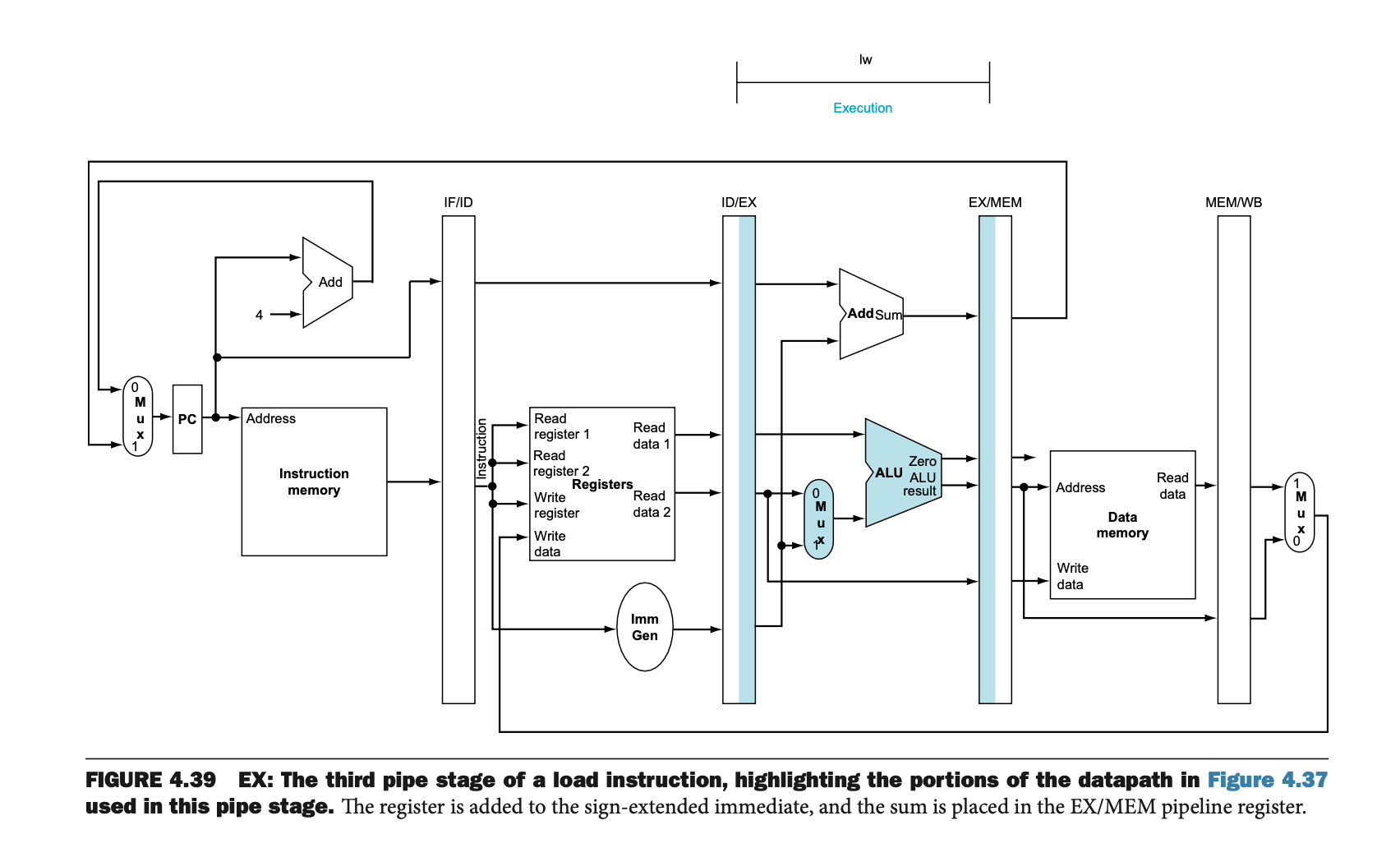 • lw 명령어는 ALU에서 주소 계산을 한다. 계산된 주소는 EX/MEM 파이프라인 레지스터에 저장된다.