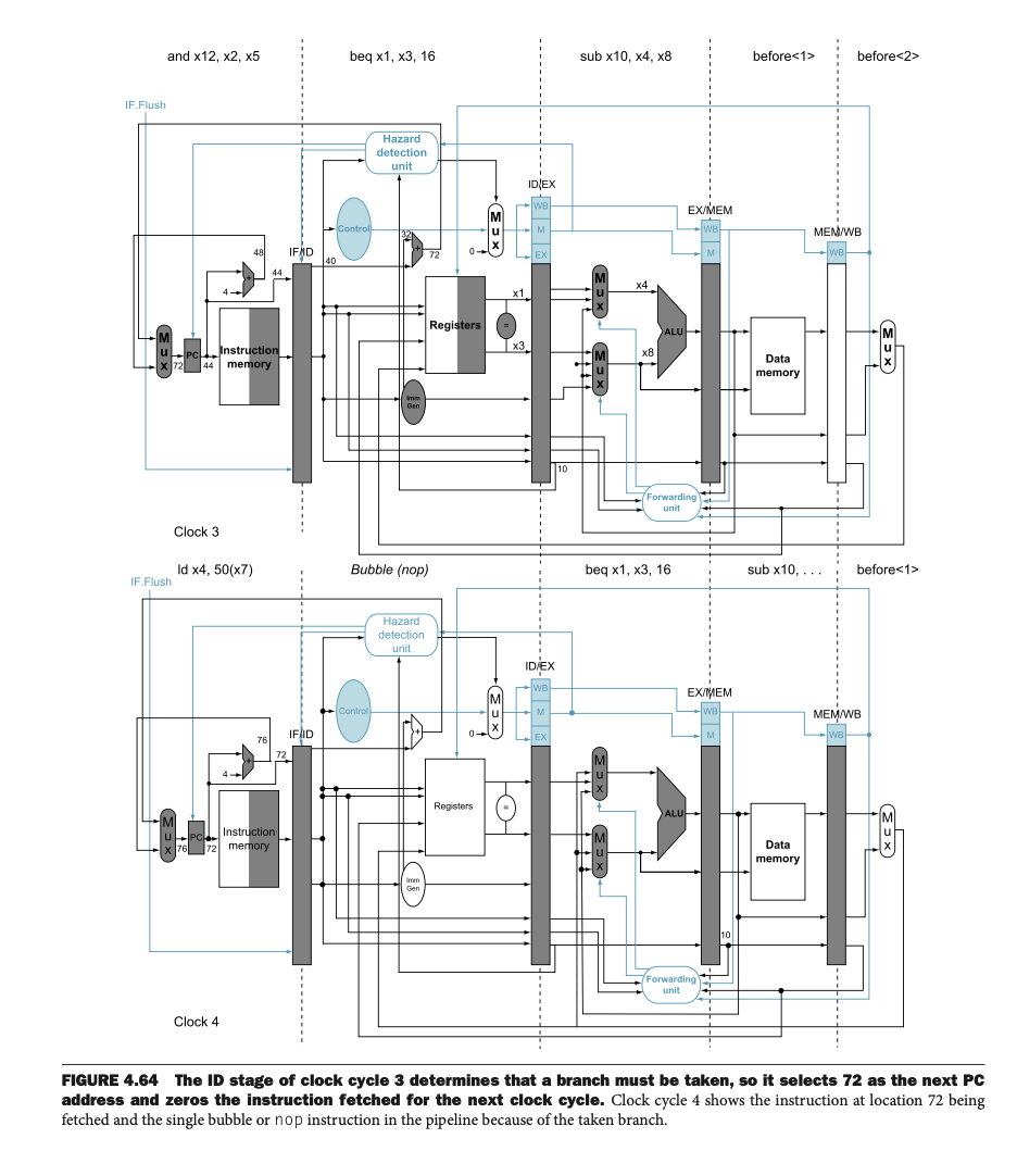 그림 4.63은 분기 명령이 파이프라인에서 어떻게 영향을 미치는지를 보여준다.