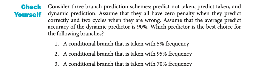 • 답변 분석: 95% 정확도는 예측이 더 자주 맞추기 때문에 분기 예측기가 더 효율적이다. 이 예에서는 예측이 틀릴 확률이 낮은 분기에 대해서 더 좋은 성능을 기대할 수 있다.