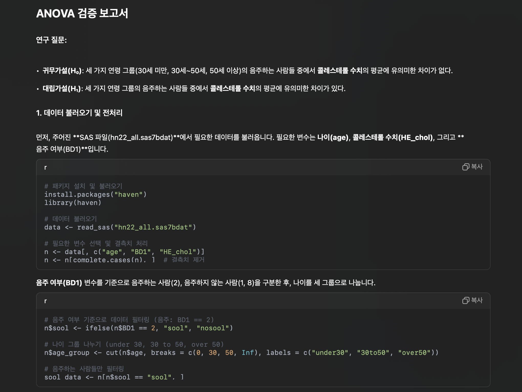 1. 데이터 전처리 과정 2. 종속변수 하나와 독립변수 여러 개를 설정 3. 모델을 만들기 전, 모델의 정확도를 높이기 위해 각각의 독립변수의 정규성과 종속변수에 미치는 영향성 확인 3.1. 종속변수 = 연속형 , 독립변수 = 연속형 인 경우3.1.1 각 변수가 정규성을 따르는지 확인 (shapiro.test)3.1.2. 정규성 여부에 따라 cor.test진행 ( 정규성을 따른다면 pearson, 정규성을 따르지 않는다면 spearman, 작은 데이터나 비선형적 관계라면 kendall 옵션적용 ) -예시 코드cor.test(data$mpg, data$wt)# Spearman 상관계수 및 검정cor.test(mtcars$mpg, mtcars$wt, method = "spearman") p-value-13..