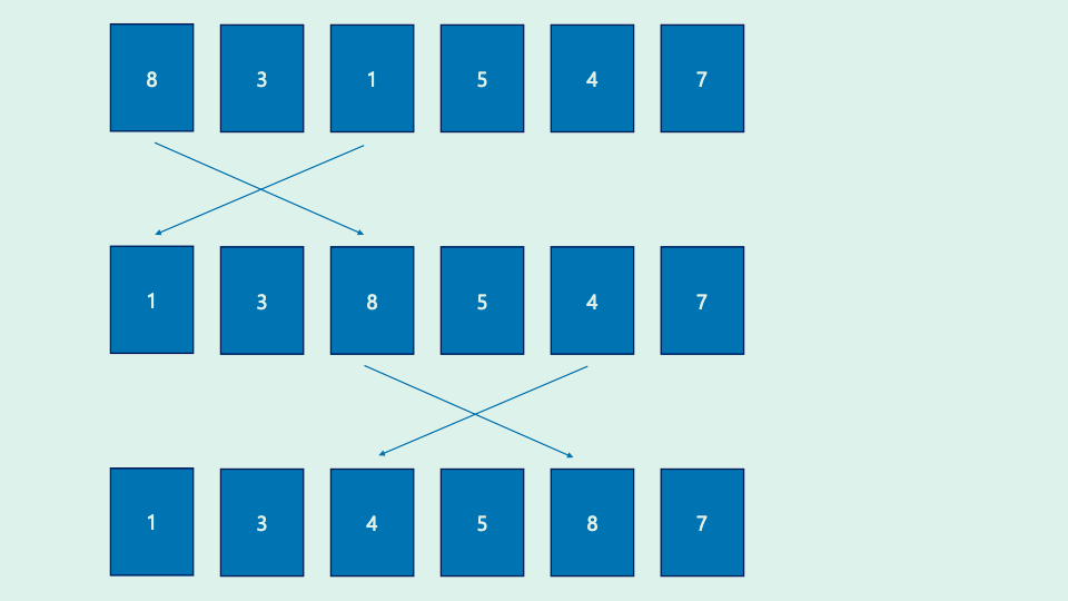 선택 정렬이란, 배열에서 가장 작은 값을 찾아서 앞으로 가져오는 방식을 반복하는 정렬 방법입니다. 글로만 보면 이해가 안될수도 있으니 그림으로 살펴봅시다. 이렇게 가장 작은 수를 찾아서 정렬을 완료합니다. 코드)#include #include bool CheckSorted(int* arr, int size); // 정렬되었는지 확인할 함수void PrintArr(int* arr, int size); // 배열을 출력하는 함수int main(void) { int arr[] = {8, 3, 2, 5, 1, 1, 2, 5, 8, 9}; int size = sizeof(arr) / sizeof(int); assert(size > 0); // 배열의 크기가 1보다 작으면 오류 발생하도록. ..
