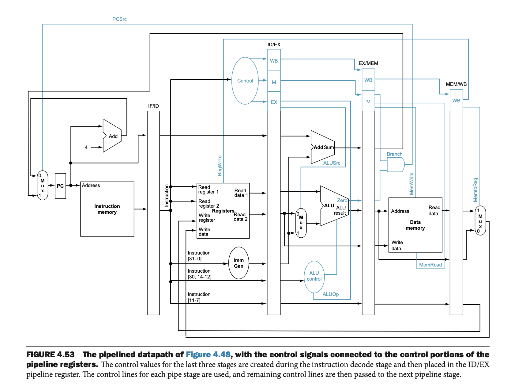 4.6 An Overview of Pipelining 1. 파이프라이닝(Pipelining)의 기본 개념 파이프라이닝은 여러 명령어가 동시에 실행되는 방식을 의미한다.즉, 여러 명령어가 실행되면서 각 명령어의 다른 단계들이 겹쳐서 수행된다.이를 통해 CPU의 작업 효율성을 높일 수 있다. 책에서는 세탁의 비유를 통해 파이프라이닝의 개념을 설명한다. • 세탁은 네 가지 단계로 나눌 수 있다. ->  세탁, 건조, 다림질, 옷 정리.  • 비파이프라인 방식모든 세탁이 끝난 후 건조를 시작하고, 건조가 끝난 후 다림질을 하는 방식이다.이 방식은 시간이 많이 소요된다.  • 파이프라인 방식에서는 세탁을 하면서 건조를 시작하고, 건조가 되면 다림질을 시작하는 방식으로 진행된다.이렇게 하면 각 단계가 겹쳐져서 전체..